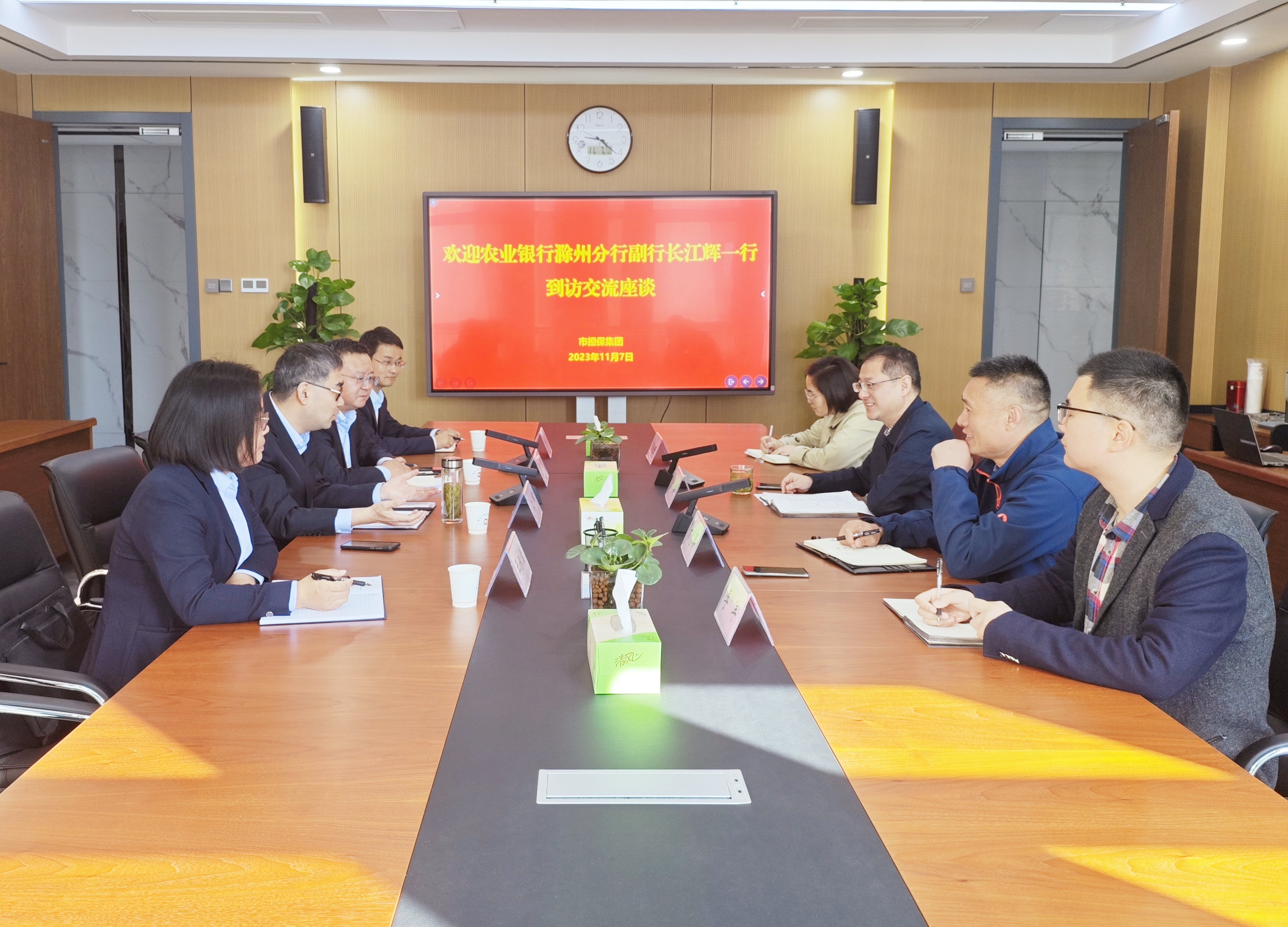 11月7日上午,農(nóng)業(yè)銀行滁州分行副行長江輝一行到訪集團交流座談,集團黨委委員、副總經(jīng)理張健及相關(guān)人員參加座談。