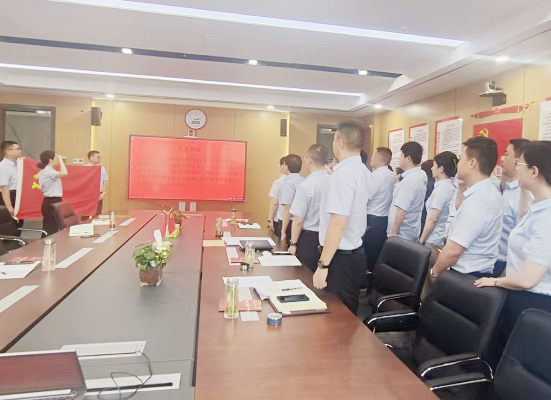 在優(yōu)秀黨員代表領(lǐng)誓下,全體黨員面對(duì)鮮紅的黨旗和莊嚴(yán)的誓詞,共同高舉右拳,莊嚴(yán)宣誓。鏗鏘有力的宣誓聲響徹會(huì)場(chǎng),錚錚誓言提醒著黨員們永葆入黨初心,踐行使命擔(dān)當(dāng)。
